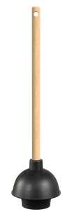 Referred to by plumbers as a “flange plunger,” this plunger is similar to our friend, the “cup plunger,” with its rubber cup at the end of a wooden stick. What makes this plunger different is a soft rubber flap inside the cup that can fold out to fit tightly over the rounded toilet drain. The result of the additional flap allows the plunger to create and maintain a seal as you operate the plunger.